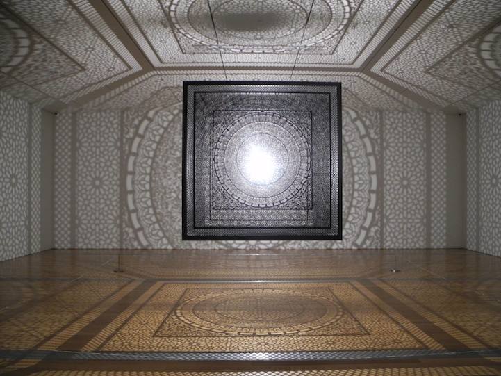 Description: Anila Quayyum Agha builds a box of casting shadows reproducing the geometry of Alhambra, a famous fortress in Granada built in the 9th century AD.
